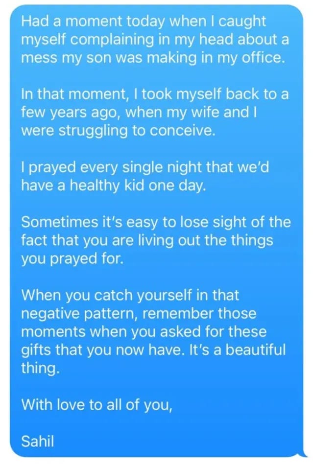 “Wait,” he said. “Every single thing I just listed as stress… was a dream I had 10 or 20 years ago.”